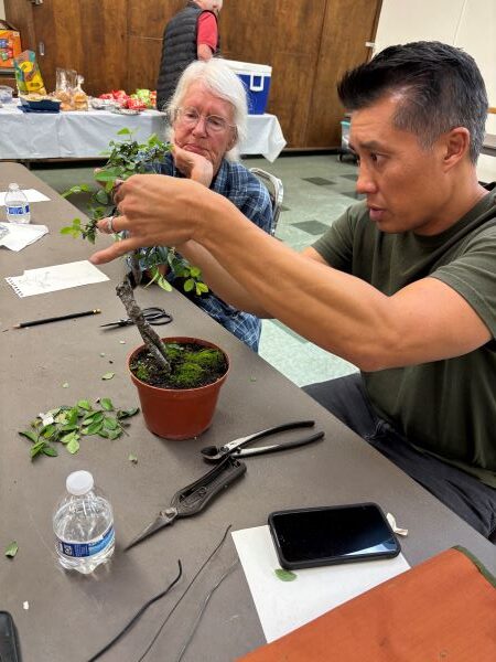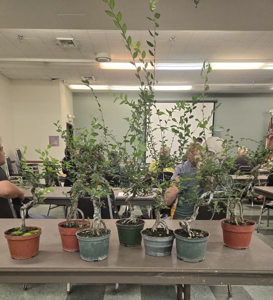 Once again, Ray Blasingame graciously brought two of Marge Blasingame’s bonsai trees for our raffle.